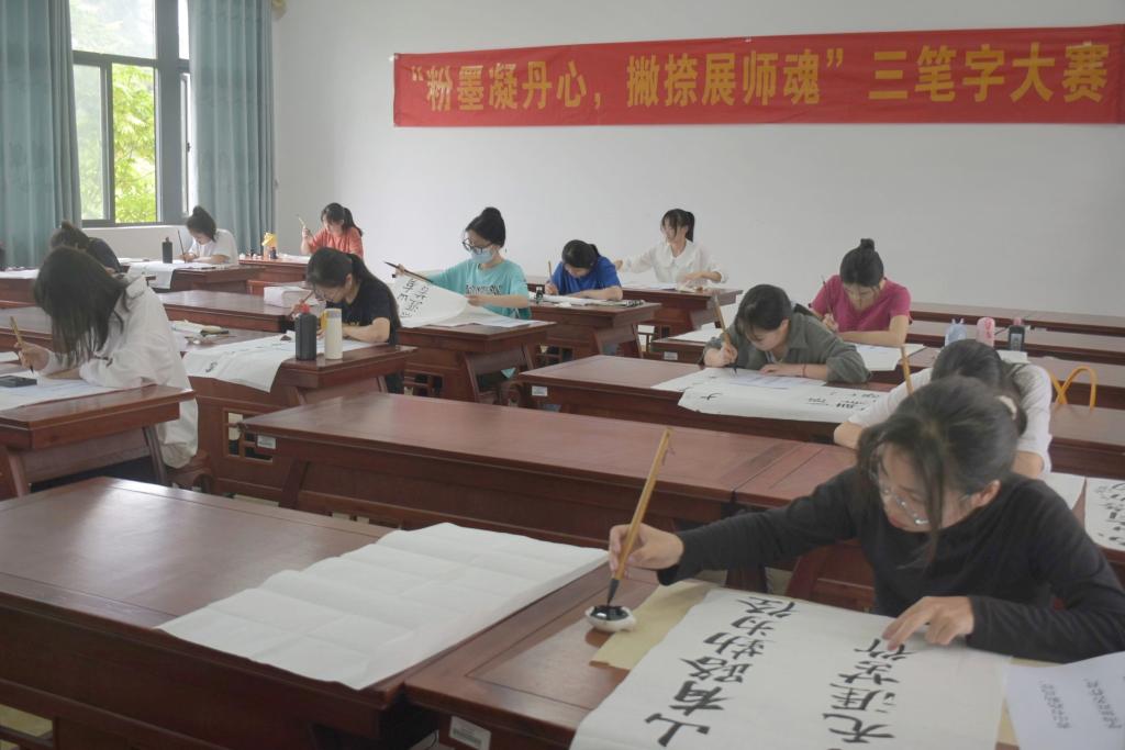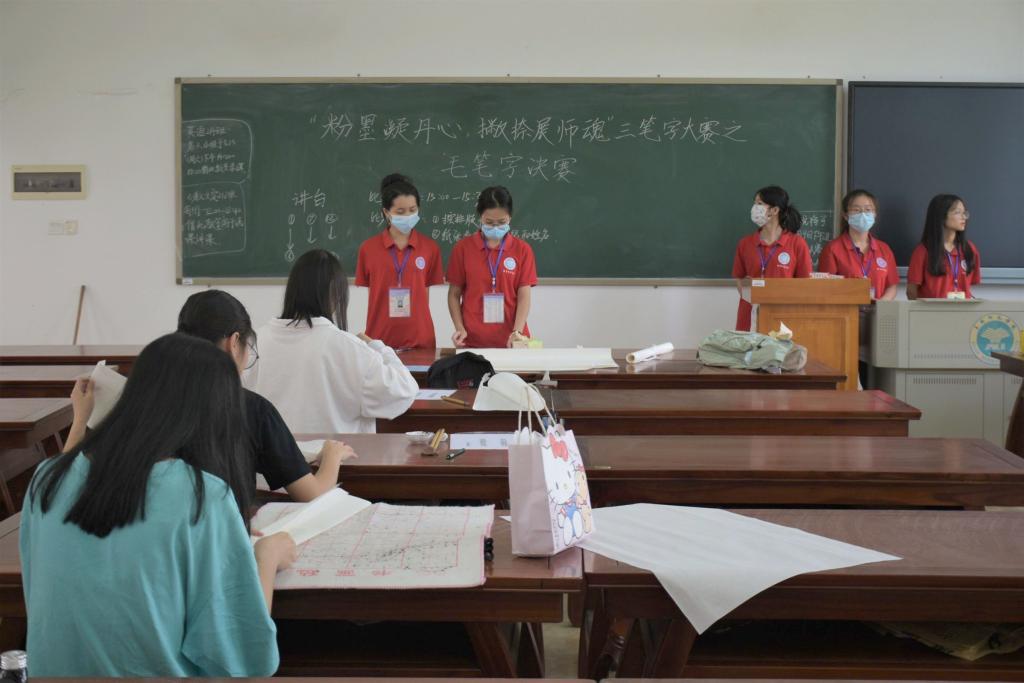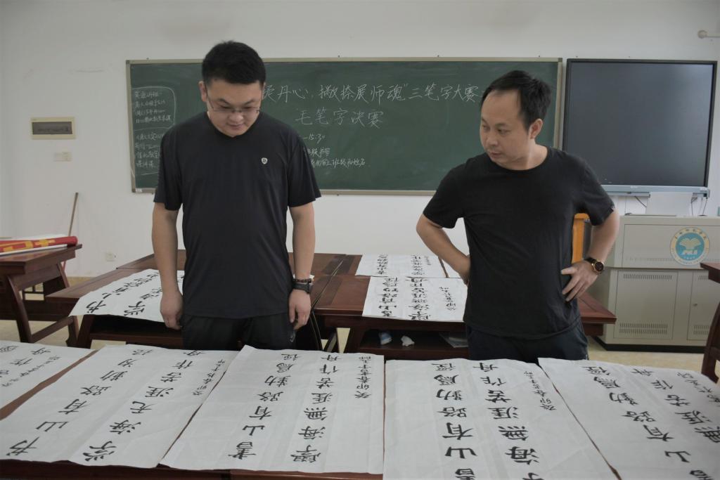 为进一步弘扬中华优秀传统文化,传承书法文明风采,5月9日下午,明升体育88于明升体育88东校区明德楼204教室开展“粉墨凝丹心,撇捺展师魂”三笔字大赛之毛笔字决赛,明升体育88教师裴杰、周向阳担任评委,明升体育88学生参加。