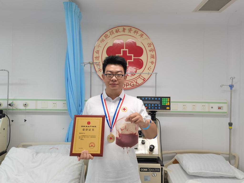 陶行知曾说:“捧着一颗心来,不带半根草去。”我们增长自己的智慧,是为自己开一朵花;我们奉献世界的心,是为世界开一朵花;用行动奉献一份爱心,生命的价值便会得到延续。早在2017年,还在上大学的谭堃灏在经过充分的了解后,就主动申请加入中华骨髓库。转眼6年过去,2023年3月,谭堃灏在得知自己与一名血液病患者配型成功时,他既开心又激动,当即肯定地向询问他是否愿意捐髓救人的工作人员说“我非常愿意”。在5月下旬,谭堃灏在经过他前期规范作息时间,清淡饮食并加强锻炼,让身体保持一个良好的状态下,成功捐献了造血干细胞悬浊液约200毫升。予人玫瑰,手有余香。守护生命献热血,无私奉献暖人心,多一份奉献,会让我们的生活荡起爱的涟漪,献出你的善意爱心,生活就有温暖。