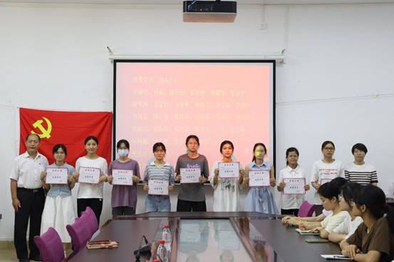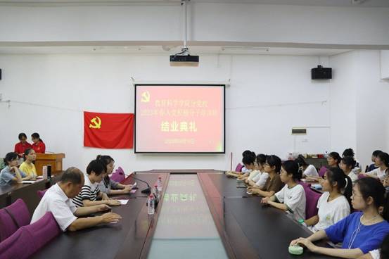 结业典礼在庄重严肃的国际歌中拉开帷幕。首先,李尚芳对为本次培训班付出辛勤劳动的工作人员表示诚挚的谢意,并祝贺参加本次培训班的入党积极分子顺利结业。她表示,成为入党积极分子是加入党组织的必要流程,她对各位入党积极分子作出以下要求:继续加强政治理论学习,坚定理想信念,坚持理论与专业实践相结合;进一步端正入党动机,主动接受党组织的教育和培训,主动向党组织汇报思想,向优秀党员看齐;坚持学以致用,发挥先锋模范作用,以实际行动争取早日加入党组织。她希望各位入党积极分子在今后的学习、生活与工作中以更高标准要求自我,立志做有理想、敢担当、能吃苦、肯奋斗的新时代好青年。最后,由李尚芳和梁雨对本次培训班中表现突出的29名优秀学员、6名优秀班干部颁发“优秀学员”证书及“优秀班干部”证书并合影留念。