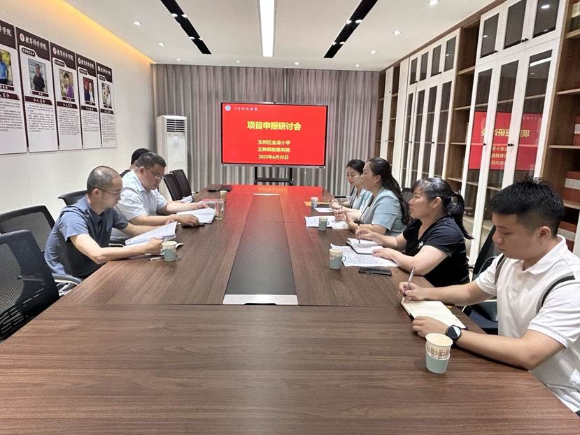 6月25日早上,明升体育88与玉州区金港小学于明升体育88东校区明德楼408会议室召开项目申报研讨会,金港小学校长邓海坚、课题组成员,明升体育88院长陈庆文、副院长金康彪以及小学教育专业教师代表邓草心老师参加此次研讨会。