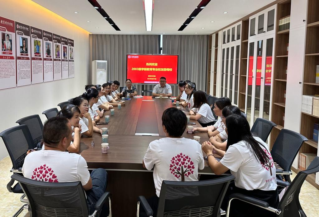 8月19日,明升体育88学前教育专业2003级校友回到母校在明德楼会议室召开毕业二十周年校友座谈会,明升体育88院长陈庆文、副院长谢清理,教师教育学院院长梁钊华,2023级学前教育专业班主任杨文静以及回校校友参加此次座谈会。