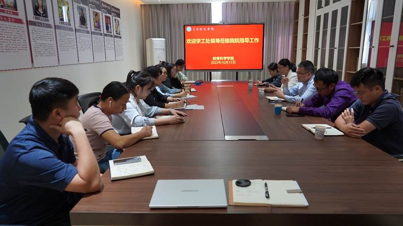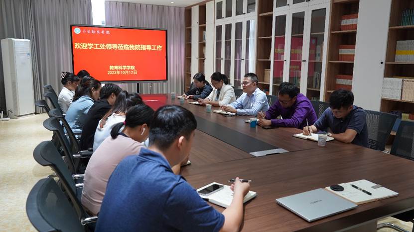 2023年10月12日,学校学生工作处处长杨潇一行到明升体育88指导工作,该院党委副书记李尚芳以及辅导员参加此次会议。