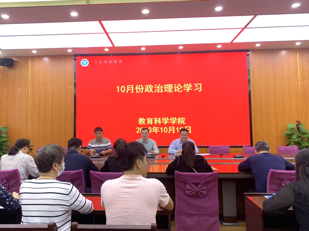 10月19日,明升体育88于明升体育88东校区明德楼学院会议室召开十月份政治理论学习会,明升体育88领导班子成员,辅导员,行政人员以及教师代表参加此次学习会。