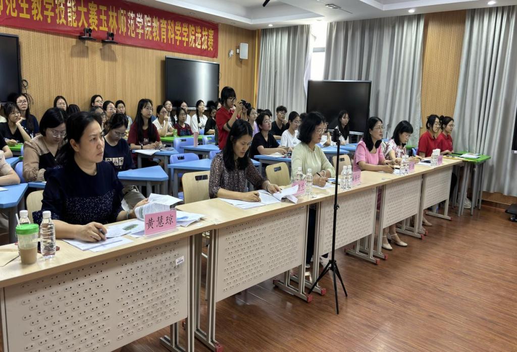 本次比赛特别邀请了广西特级教师、自治区优秀教师、玉林市玉东实验小学校长林盛云,广西特级教师、广西21世纪园丁工程第二批第二期自治区级骨干教师、玉林市玉州区迴龙小学校长庞锡兰,全国优秀教师、广西基础教育深蓝名师、玉东四小党支部书记、校长罗丹,玉东新区实验小学教务副校长文英,玉州区第六实验小学教导副主任李春红,玉东新区第二小学第二党支部书记、教务主任蔡丽晓,玉林市幼儿园党支部副书记、副园长陈榕,玉林市幼儿园办公室主任庞深,玉林市第二幼儿园副园长周小惠,以及学院骨干教师担任评委。各组评委对选手的表现进行了精彩点评,她们对学院参赛学生优秀表现给予肯定与鼓励,并表示明升体育88学生落落大方,淡定自若,思维敏捷,教学设计符合新课标的要求,同学们展示了较高的专业素养,总体水平较高。同时,结合比赛过程,对选手们的教学理念、教学设计、说课讲课、板书设计、教学过程等环节提出了非常中肯的改进建议。