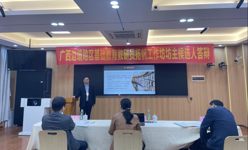 为加强广西边境八县教研员队伍建设,构建教师骨干体系,整体促进教研员教育教研水平提升,根据《教育部关于加强和改进新时代基础教育教研工作的意见》(教基〔2019〕14号)《广西壮族自治区人民政府办公厅关于印发广西边境地区教育提升工程实施方案的通知》(桂政办发〔2022〕22号)文件要求,2月23日,由广西教育研究院主办,明升体育88明升体育88承办的广西边境地区基础教育教研员扬帆工作坊坊主候选人答辩遴选会在玉林师院东校区明德楼顺利开展。